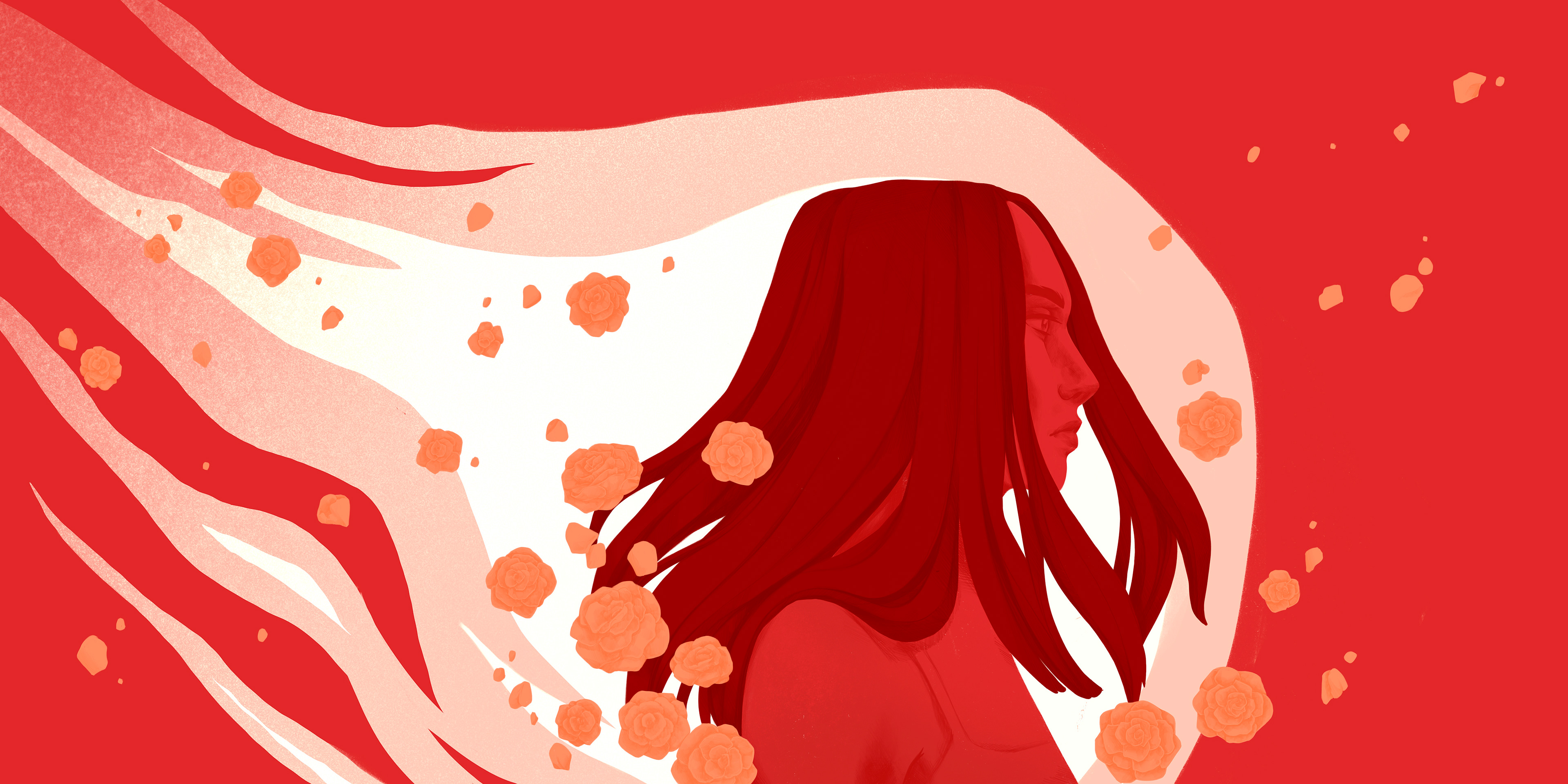 An conceptual, illustrated wrap-around album cover of Charlotte Cardin's